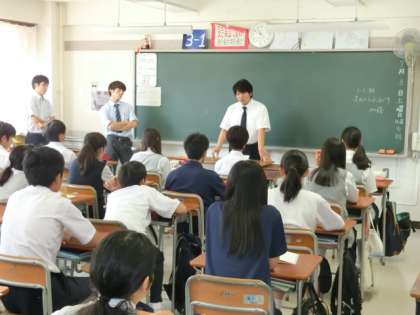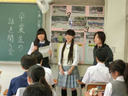 卒業した先輩6名から、受験の話や、高校生活の話を聞きました。とても参考になりました。