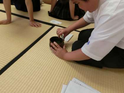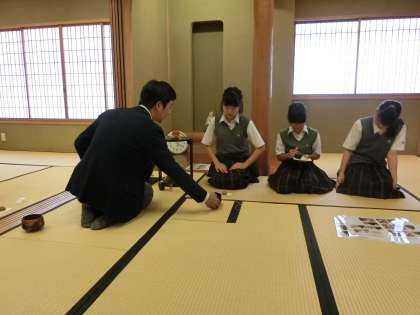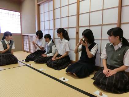 7月13日(木)茶道部では本日、講師の飯田先生のご指導のもと、濃い茶の作法を体験しました。