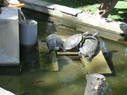 同窓会長から、池の水を循環するポンプをいただきました。カメも喜んでいます。ありがとうございます。