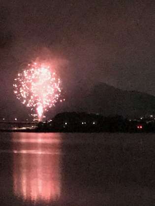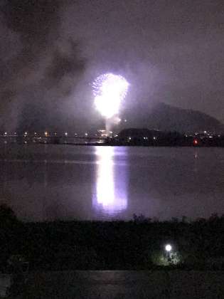 河口湖花火大会を、宿舎の屋上から見学しました。