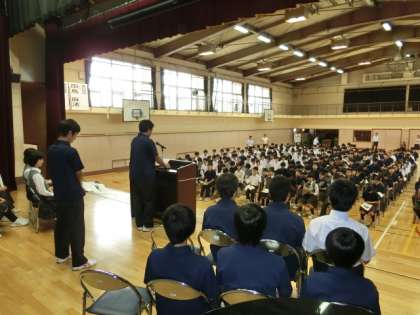 立候補者と応援演説の生徒が、それぞれプレゼンをしました。