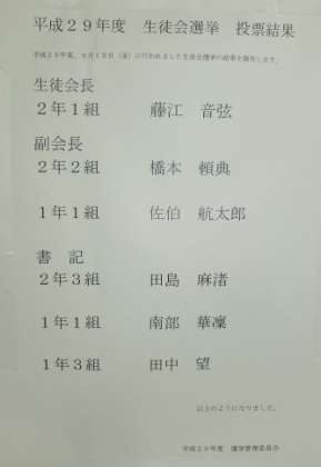 結果を発表しました。駒留中が、明るく楽しく、みんなの夢が叶えられる学校になるように、よろしくお願いします。