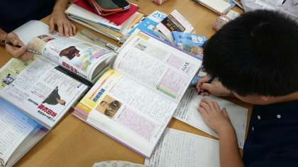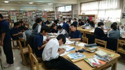 > 2年歴史「幕末」についてのレポート作り。前回の戦国時代レポートはインターネットを通じて、今回は書籍を通じて情報を自分なりに編集することが目的。また、友達とアドバイスや情報の共有を可とし、座学と住み分けた「主体的、対話的」な活動に取り組んでいます。