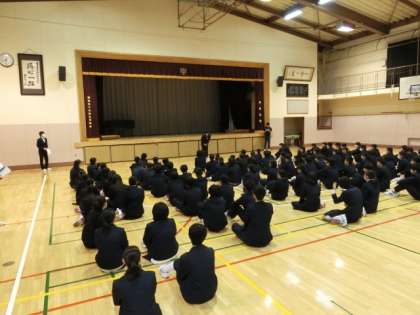 台風の影響もなく、無事8時30分の学年朝礼に全員そろいました。