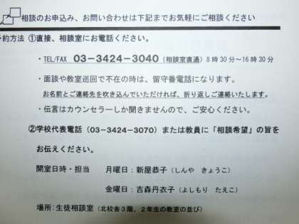 カウンセラーさんが、週に2日全日勤務しています。活用ください。