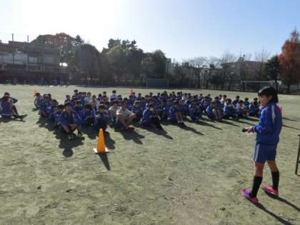 2年生が高校の先生の訪問授業として、体育の出前授業を受けました。都立富士高校と明星学園の先生から、「短距離走」と「リレー」について学びました。