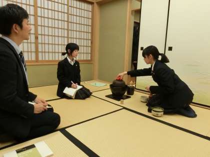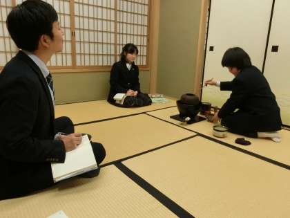 茶道部は本日、1年生に風炉の薄茶点前のテストをしました。