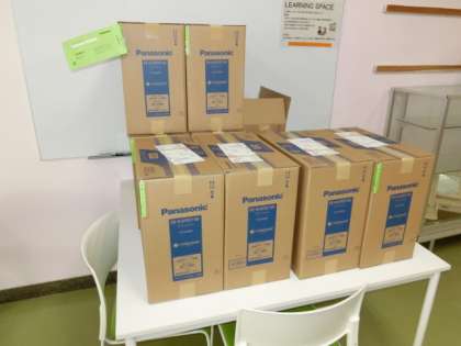 PTAの70周年積立金の残金で、普通教室に加湿器9台をご寄付いただきました。インフルエンザ対策として有効に活用いたします。ありがとうございます。今までのものは、旧式でしたが、今度は最新式のものです。