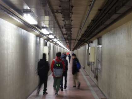 その後、さらに先の扇島に抜ける歩行者用海底トンネルを渡り、川崎マリエン展望ビルに到着。