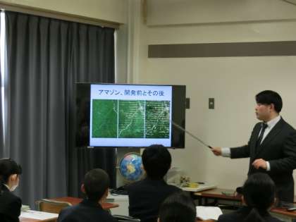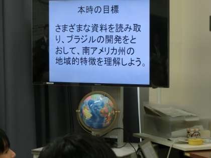 1-3の生徒を対象に「南アメリカ州 開発の進展と環境問題」の単元で、ブラジルについて学びました。