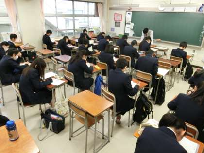 今日は、ほとんどの私立高校の推薦入試日です。3年生の教室では空席が目立ちます。寒い天候ですが、受験している生徒は頑張ってくださいね。