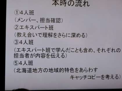 最後に、北海道地方の地域的特色を代表するキャッチコピーを作成する課題に取り組みました。各クループで、ユニークで的確なキャッチコピーが出来上がりました。