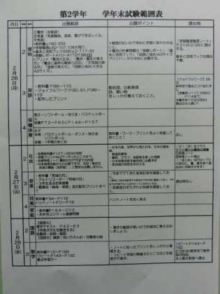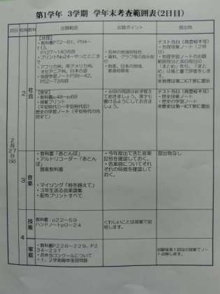 学年末試験の2週間前になりました。試験範囲のプリントも配られました。しっかりと準備しましょう。