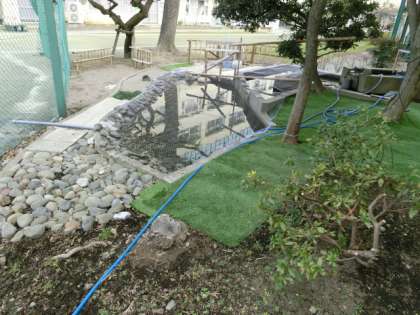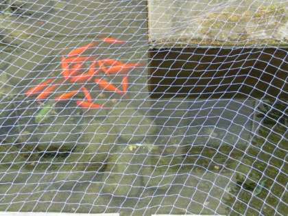 大型の野鳥が、池の魚を食べてしまうので、ネットをつけて保護しています。