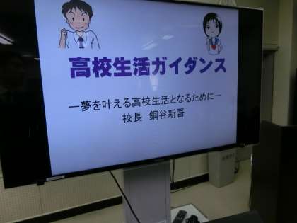 銅谷校長から、高校生活で良いスタートを切るために、大切な講話がありました。