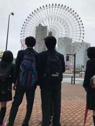 観覧車をバックに