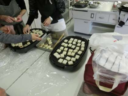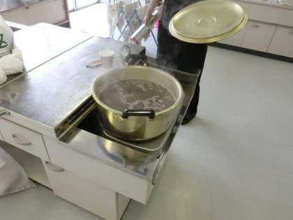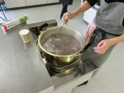 お母さんたちが、お汁粉の準備をしてくれています。おいしそうですね。