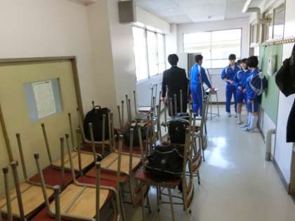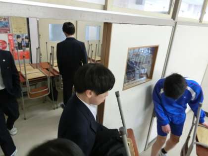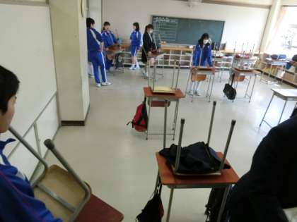 お世話になった教室をきれいにします。テキパキと良く働きました。
