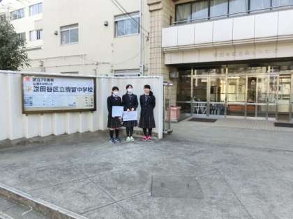 担当の生徒が、プラカードを作り、挨拶を呼びかけています。