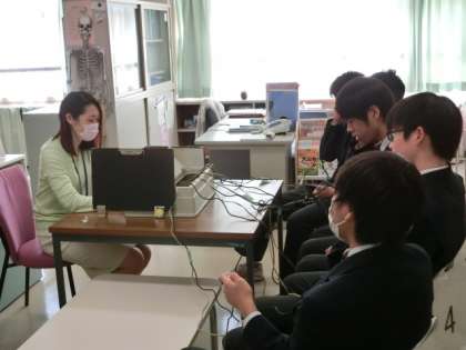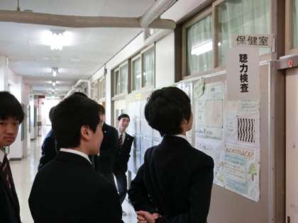 今年度の定期健康診断が始まりました。まず最初は聴力検査みんな静かに真剣にやっています。