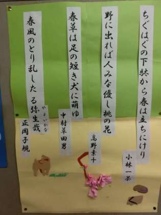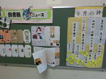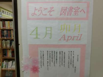 図書室前の廊下の壁や校長室前の掲示板に4月の詩の紹介等を掲示しています。ご覧ください。