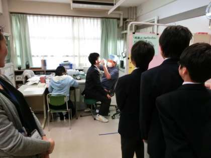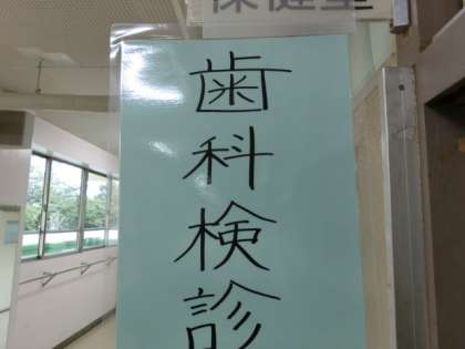 今日は1年生と2年1組が歯科検診を行っています。治療が必要と書かれた用紙を貰ったら、至急治療をし、完治したら、お医者さんに記録して頂き、学校の提出してください。