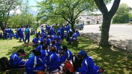 緑の休暇村到着、昼食後、班別オリエンテーリングです。