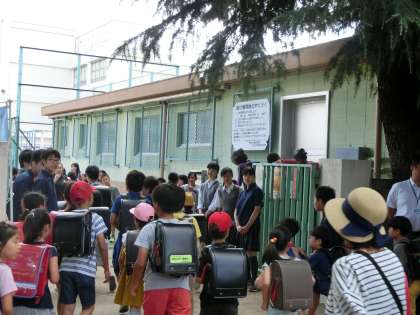 駒繋小学校に生徒会役員が、7:50〜8:10あいさつ運動を2日間しました。