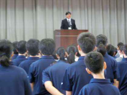 6月は「責任」について考えて行動しましょうと校長先生から話がありました。生活指導主任の先生からは、雨の日の校内の生活の仕方・教室のエアコンルール等についての話がありました。