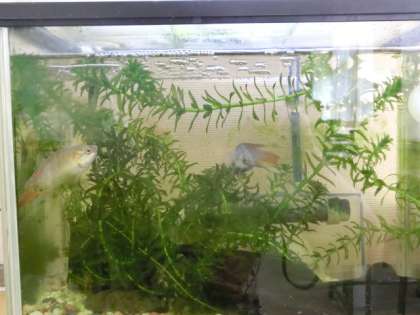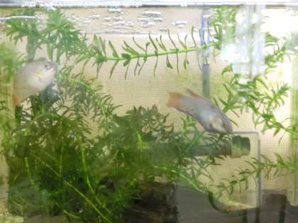 1年4組に水槽があり、去年の3年生から引き継ぎパラダイスフィッシュを飼っています。最初の倍以上に大きくなり、元気に泳いで、生徒の様子を水槽から見ながら、癒やしてくれています。