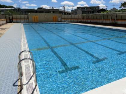 今週清掃をして頂き、水をはりました。来週からプール授業が始まります。水着の準備は出来てますか?アメンボがもうスイスイ泳いでました。
