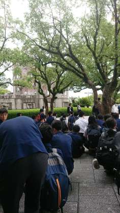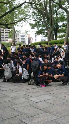 広島平和記念公園、ボランティアガイドの方の案内で、班行動になります。