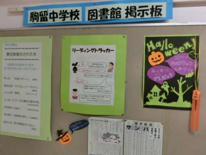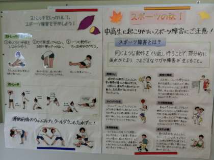 廊下には、10月の図書館のお勧め本や進路情報、保健室前はスポーツの秋に向けてのストレッチの方法など、沢山の情報が掲示されています。じっくりご覧ください。
