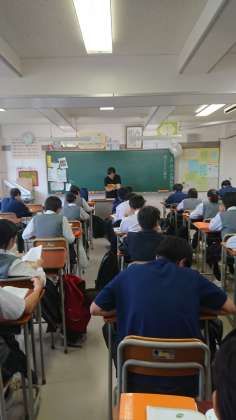 道徳授業地区公開講座は、学校が保護者、地域の方と連携して、生徒の豊かな心の育成に寄与する取り組みです。写真は2年1組、2組、3組の様子です。