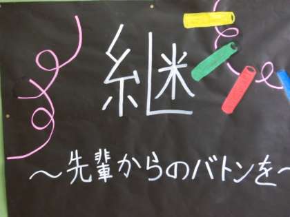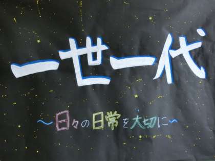 3・4階の階段を上ったところに2・1年生の後期学級委員が決めた学年のスローガンが掲示されています。