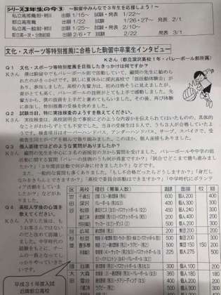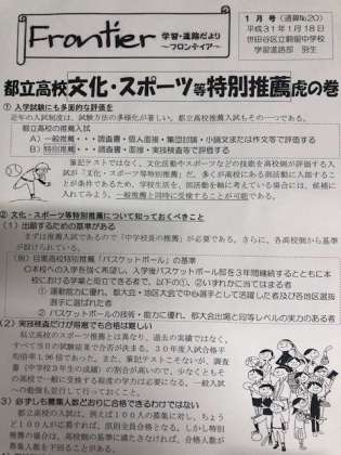 今月の進路だよりは、来週末に迫る都立高推薦入試「文化スポーツ等特別推薦」です。