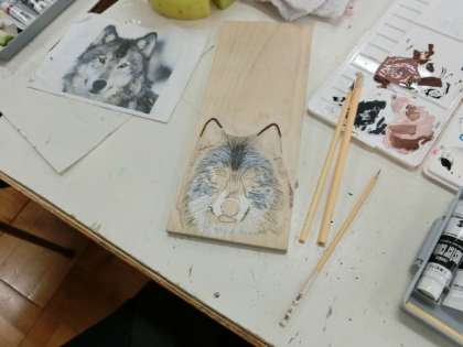 廊下に展示されている去年の作品にも勝る作品が、着々と作成されています。2月4日からの駒ルネ作品展をお楽しみに〜。