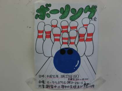 恒例のボーリング大会が、3月17日日曜日午前中、オークラボウルで行われます。参加者募集中です。