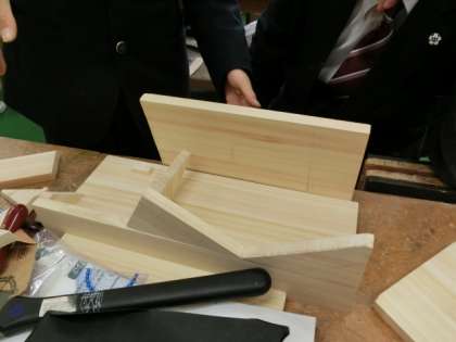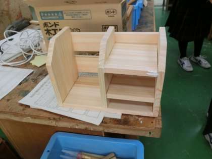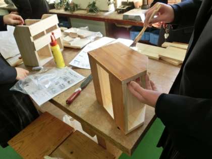 ひのきを切って、各自考えて作っています。本箱にしたり、押し入れに入れる箱?を作っているそうです。