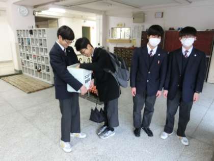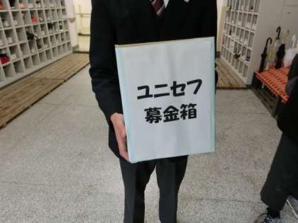 今日から8日まで、朝8:00〜8:20 各学年の下駄箱で生徒会と生活委員が行っています。ユニセフ募金は朝生徒会の持っている箱に入れてください。しっかり挨拶しましょう。