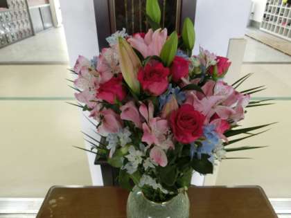 昨日、駒繋小に合唱交流に行き、3年生が6年生だった時の担任の先生から、卒業祝いということで、お花を頂きました。ありがとうございます。玄関に飾らせて頂きました。