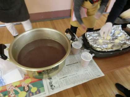 朝8時前から、調理室で2年生のお母様が集まって、今年も美味しいお汁粉を作って下さり、みんなで美味しく頂きました。準備ありがとうございました。