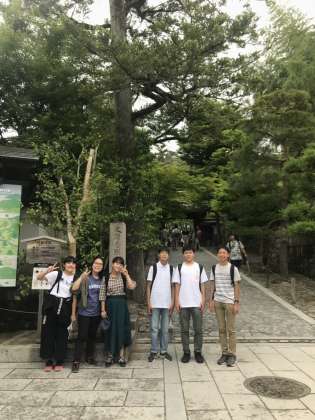 今回の班行動は東山エリアを、主に徒歩と市バスを使って回るものでした。南限を三十三間堂、北限を銀閣寺にしています。最終目的地の銀閣寺に到着したメンバーです。