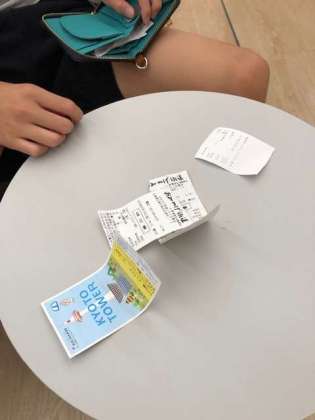 今回の修学旅行では、交通費やお土産代など必要な経費を予算として計画し、実際いくらかかったかを細かく管理するようにしています。レシートをみながら、しおりに実際いくらかかったかを記入しています。
