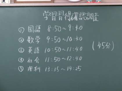 本日、学習習得確認調査(区学力調査)の2回目が3年生を対象に実施されました。5教科の学力調査で、結果は進路指導にも活用します。次回第3回は10/25(金)実施予定です。(3年生対象)