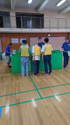 トイレ等、上下水道の機能がマヒした時を想定して、設営訓練を行いました。