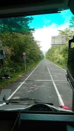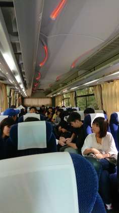 富士スバルラインに入りました。バスレク、盛り上がっています。この後、電波不通エリアに入ります。