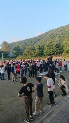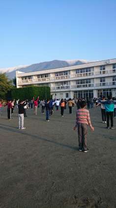 今日もお天気の心配は無さそうです。朝礼、体操、この後朝食です。