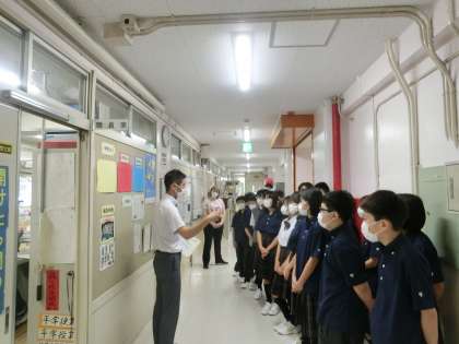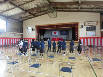 本日は2回目の1年生分散登校日でした。1時間目の学活では、クラスごとに校舎内を見学し、施設の利用方法などを学びました。また職員室の入り方を習って実際に入室しました。多くの先生方に注目され、緊張した様子でした。2時間目の学活では、入学式の説明を受け、日曜日に挙行される式典のイメージを膨らませていました。3時間目の学活では、クラスで給食や清掃についての説明を受けました。またクラスの係を決め始める動きも見られました。