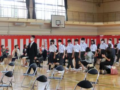 本来ならば4月の上旬に実施するはずだった入学式が、本日行われました。初めてクラス全員がそろい、通常の入学式とは違う段取りで進行する中で、全員が立派に落ち着いて式に臨みました。一つの節目を迎えたことで、これからより一層中学生としての自覚がでてくることと思います。